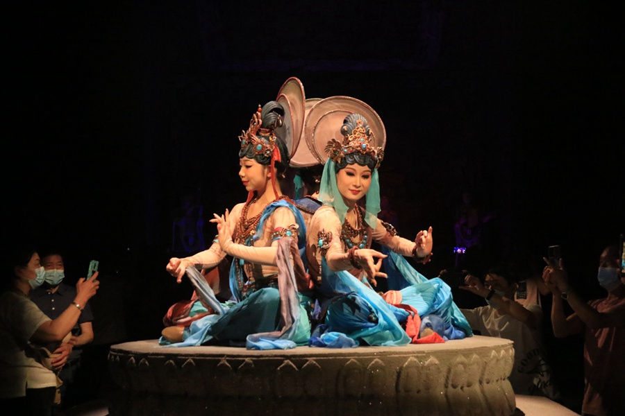 大型洞窟式沉浸體驗劇《樂動敦煌》演出現(xiàn)場。張曉亮攝