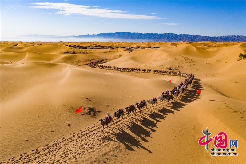 在沙天相連的無邊沙海,連綿無盡的沙峰浪谷,騎駱駝身臨其境,感受絲路駝鈴的神秘和浪漫,享受淳厚的寧夏風情。