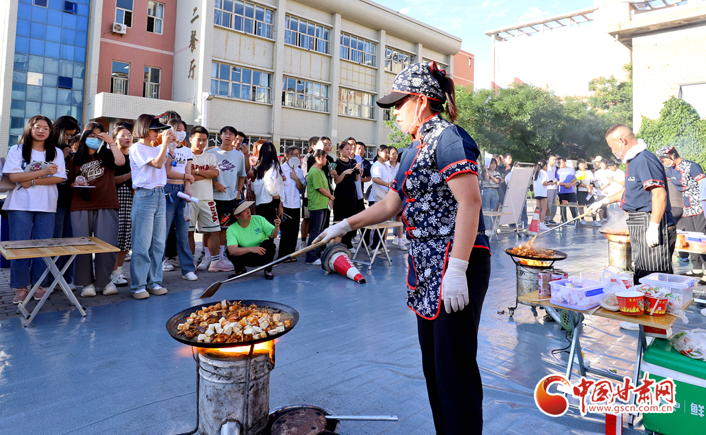 近日,甘肅省張掖市山丹縣“特色小吃進高校”活動在河西學院火熱進行,“山丹炒撥拉”名小吃的廚師們?yōu)閹熒鷤冎谱髅朗车耐瑫r還教授炒撥拉制作技藝,讓學子們在在品味美食的同時領略了飲食文化的博大精深。