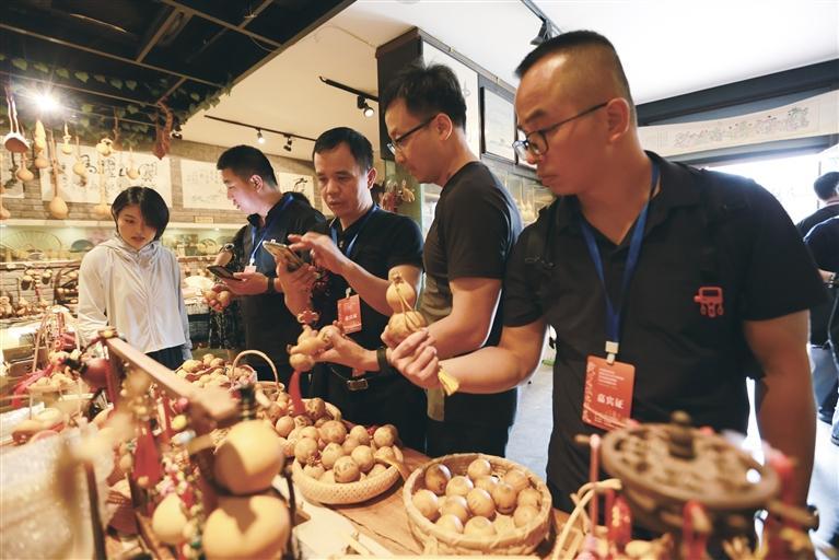 參會嘉賓觀看刻葫蘆工藝品 張建平 攝
