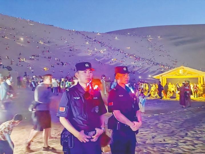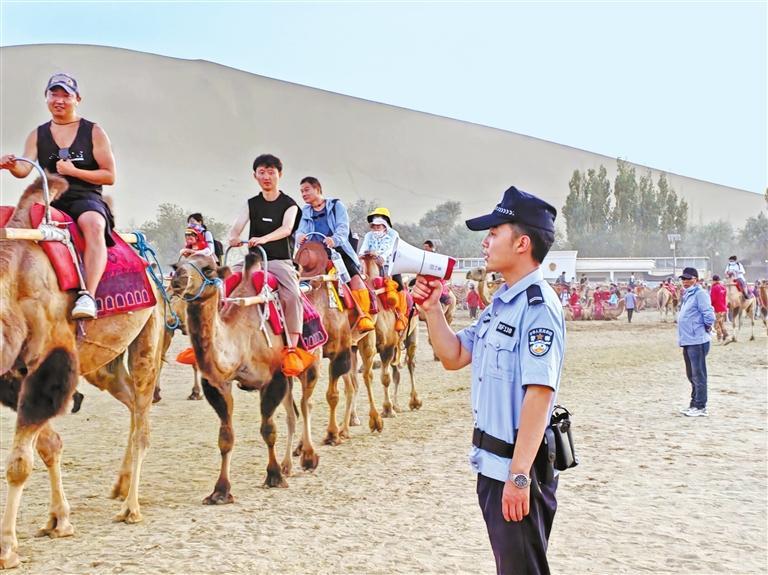 面對隨之而來的社會治安防控壓力,敦煌公安立足旅游特色,結(jié)合夏季治安打擊整治行動,精準布警、精細管控、精致服務(wù),時刻踐行“民警就是導游,隊伍就是風景,管理就是服務(wù),執(zhí)法就是守護”的敦煌旅游警務(wù)理念,用“5A”警務(wù)服務(wù)“5A”景區(qū)。