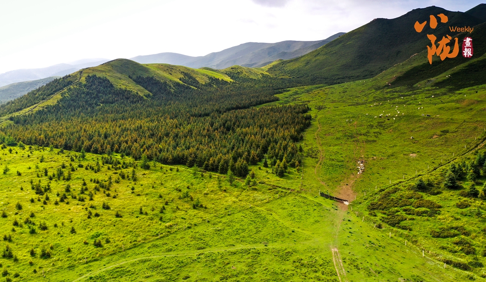 草原在山脈起伏中展開,南來北往的游客踏草慢行,感受獨特的草原夏日風(fēng)情。