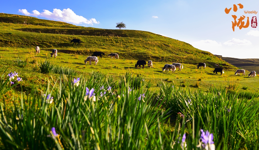 水草豐美、牛羊遍山,馬蓮花開出藍紫色花朵,給這一方水土染上了豐富的色彩。