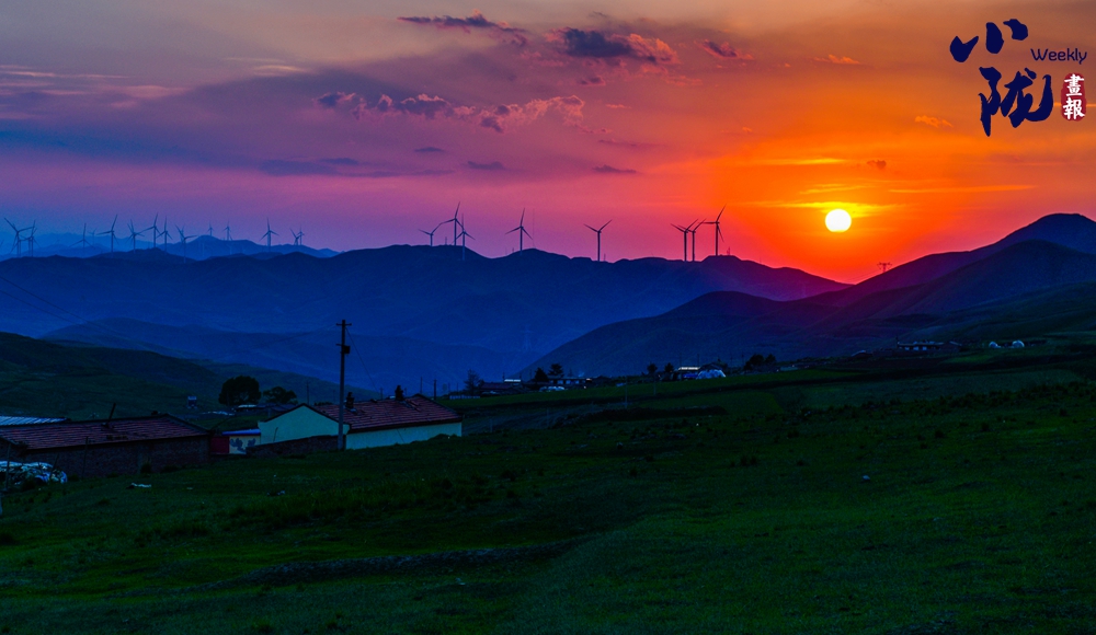 傍晚的草原,夕陽染紅了流云,越過起伏的草丘,翻過青色的遠山,風(fēng)車那邊,無論多遠,依然是你的家鄉(xiāng)、你的牧場、你永遠依戀的地方。