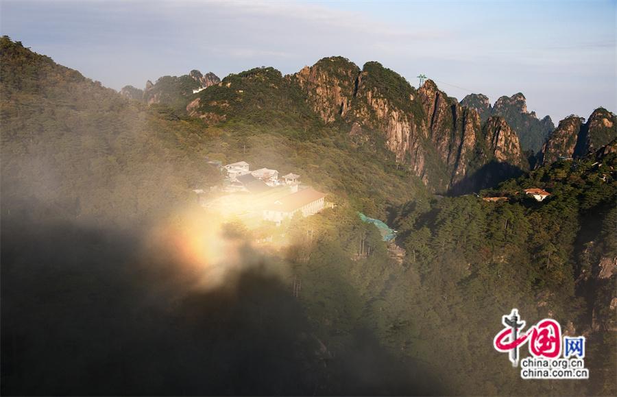 9月7日,安徽黃山風(fēng)景名勝區(qū)云霧飄渺仙氣飄飄,如同仙境,云霧在初升的陽(yáng)光照射下,神奇的“佛光”景象出現(xiàn)在人們眼前,讓來(lái)黃山的游客大飽眼福,贊嘆大自然的鬼斧神功。