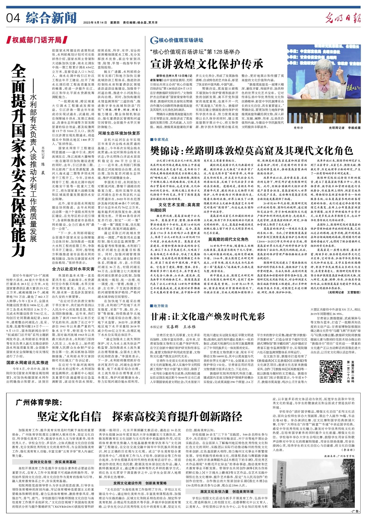 新華社蘭州9月13日電(記者 張智敏)由中宣部宣教局、光明日報社共同主辦的“核心價值觀百場講壇”第128場活動9月13日在甘肅敦煌研究院舉行。“文物保護(hù)杰出貢獻(xiàn)者”國家榮譽(yù)稱號獲得者、敦煌研究院名譽(yù)院長樊錦詩作題為《絲路明珠敦煌莫高窟及其現(xiàn)代文化角色》的演講。