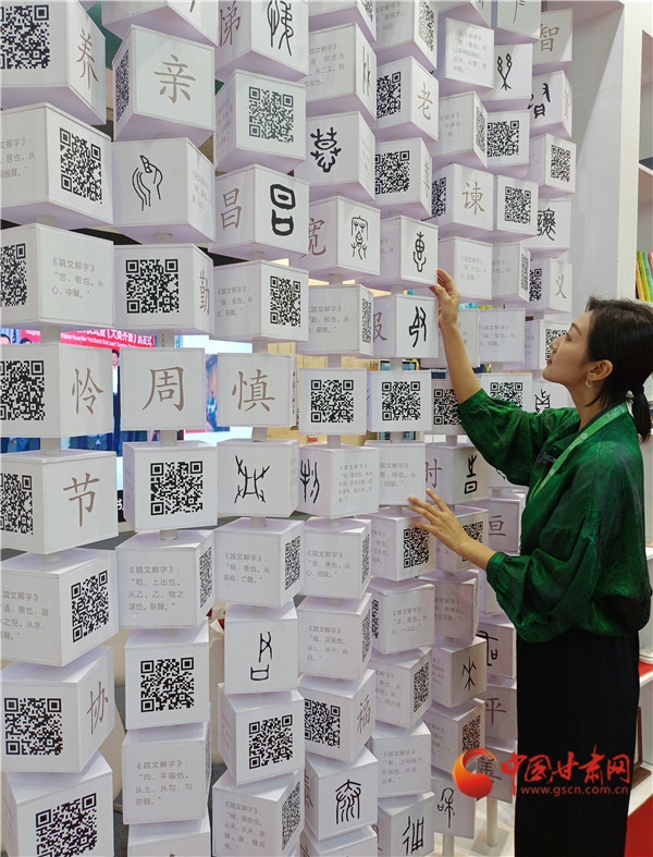 中國(guó)甘肅網(wǎng)9月22日訊(西北角·中國(guó)甘肅網(wǎng)記者 宋芳科 馮睿棟)中國(guó)文字,東方表達(dá)。漢字是我們的文化符號(hào),從甲骨文到金文到篆書、楷書,一步步走來見證著中華的文明文脈。山東作為孔孟之鄉(xiāng),禮儀之邦,出版業(yè)亦重視傳統(tǒng)文化傳承。此次山東展團(tuán)來敦煌參加第十三屆中國(guó)數(shù)字出版博覽會(huì),帶來了《中國(guó)人 中國(guó)字》系列書籍和相關(guān)的文創(chuàng)衍生產(chǎn)品,盡顯中華文字之美,寓意之妙。