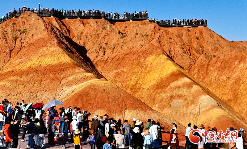 張掖七彩丹霞游人如織 (王將 攝)