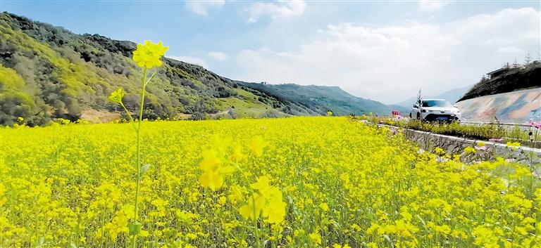 金秋時(shí)節(jié),沿太子山旅游風(fēng)情大通道臨夏縣段景色如詩(shī)如畫(huà),油菜花、墻體彩繪與遠(yuǎn)山、藍(lán)天白云相映成輝,令人賞心悅目。