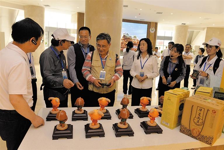 聯(lián)合國教科文組織專家在臨夏地質(zhì)公園博物館觀看文創(chuàng)產(chǎn)品。