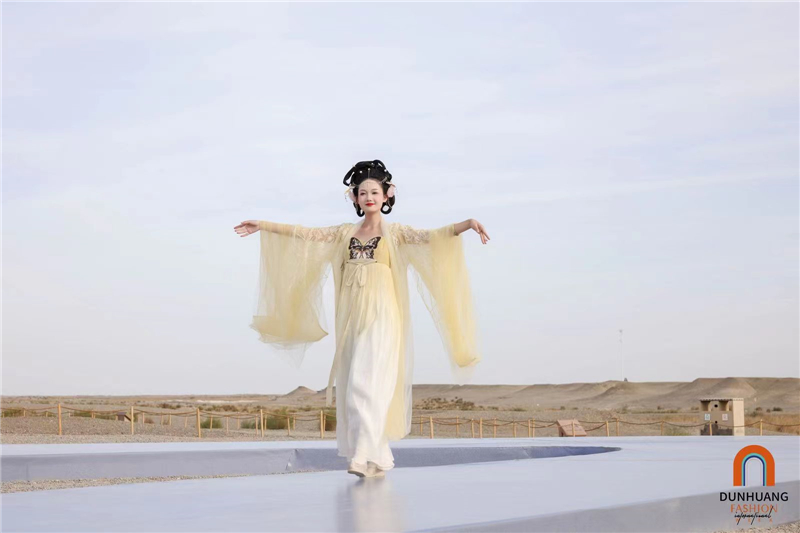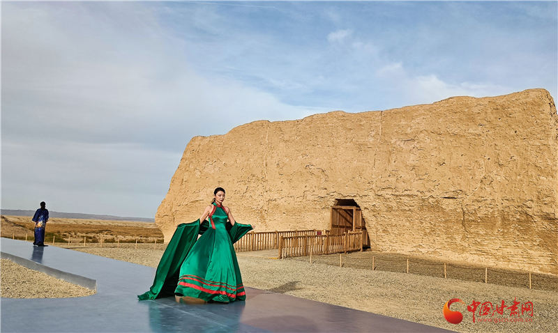 敦煌是絲綢之路上的一顆璀璨明珠,是東西方文明交匯的地方。位于敦煌的玉門(mén)關(guān)遺址是世界文化遺產(chǎn),是可以欣賞“大漠孤煙直,長(zhǎng)河落日?qǐng)A”的關(guān)隘,是可以感懷“羌笛何須怨楊柳,春風(fēng)不度玉門(mén)關(guān)”的古跡。敦煌潮韻,玉關(guān)霓裳“2023敦煌國(guó)際時(shí)尚周”開(kāi)幕秀選在玉門(mén)關(guān),是古老與現(xiàn)代,文化與歷史的交匯。