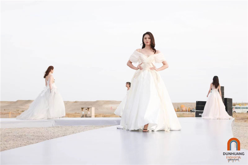 2023敦煌國際時尚周以一場在玉門關(guān)前的時尚走秀拉開帷幕。著名時尚藝術(shù)家、服裝設(shè)計(jì)大師張肇達(dá)攜手頂級婚紗品牌馬克·蝶麗奧娜帶來了60套婚紗禮服首次亮相。