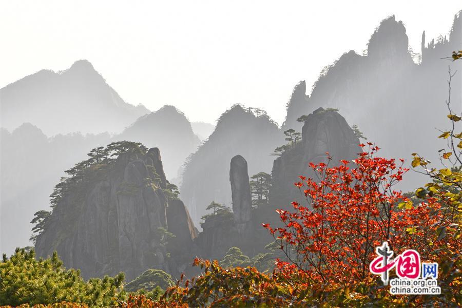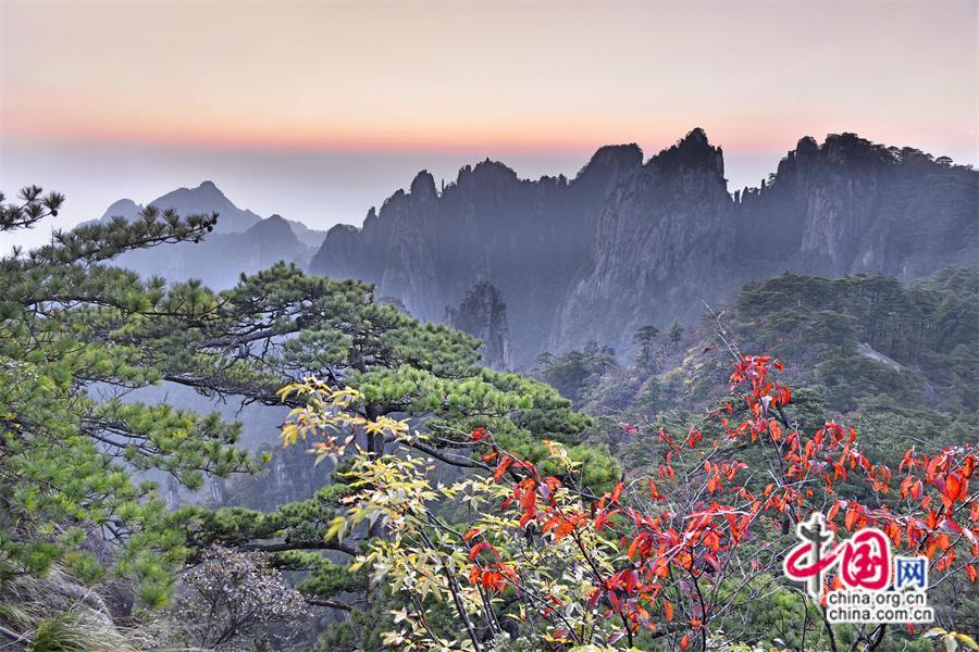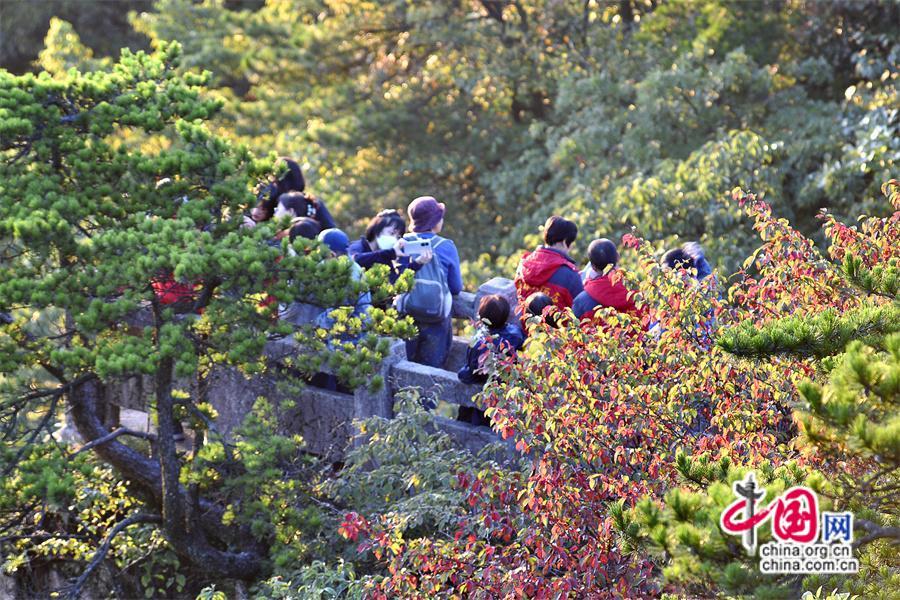 10月以來黃山風(fēng)景區(qū)已進(jìn)入秋色斑斕季節(jié),是一年中色彩最豐富的季節(jié),晨曦暮落,處處如畫,古松與秋果相隨,青紅交織,金黃色的樹葉隨秋風(fēng)在空中飛舞,或飄落在游步道上、或散落在峽谷中,處處生機(jī)盎然,令人流連忘返,明代旅行家徐霞客是這樣贊美黃山的“楓林相間,五色紛披,燦若圖繡”。