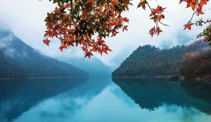 初冬時節(jié),文縣天池國家森林公園尚未褪去秋裝。遠(yuǎn)山峰巒疊嶂,層林色彩斑斕,近水沉斂如鏡,林木倒映其間。黃葉悄落,波紋漣漪,云霧時起,水霧彌漫。初冬的天池,靜美如畫卷。