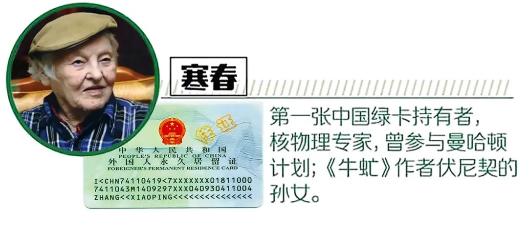 2004年8月15日,《外國(guó)人在中國(guó)永久居留審批管理辦法》正式頒布,規(guī)定外籍人申請(qǐng)合格者將獲得中國(guó)政府頒發(fā)的“外國(guó)人永久居留證”,我國(guó)正式開(kāi)始實(shí)施外國(guó)人永久居留證管理制度。人們仿照國(guó)際慣用說(shuō)法,稱(chēng)中國(guó)開(kāi)始實(shí)施“綠卡”制度,中國(guó)“綠卡”進(jìn)入2.0時(shí)代。持證者在中國(guó)的居留地、住房和就業(yè)皆不受限制,出入中國(guó)國(guó)境無(wú)須再簽證。綠卡不是國(guó)籍的變更,但是拿到綠卡的外籍友人在中國(guó)出入境,工作、旅行、生活會(huì)更加方便。拿到中國(guó)第一張“外國(guó)人永久居留證”的是放棄了自己心愛(ài)的核物理研究,而且不畏難苦,扎根農(nóng)村,為中國(guó)的奶牛改良工作奮斗了一輩子的美國(guó)知名核物理學(xué)家寒春。