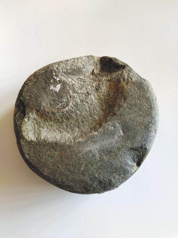 據(jù)喇家遺址發(fā)掘領(lǐng)隊(duì)葉茂林先生介紹,喇家遺址一個房址中出土了一批“刻符石”,大多在房址周圍,擺放得整整齊齊,有大有小。有學(xué)者整理研究了73個,認(rèn)為刻符石器是喇家遺址所出石器中的一類特殊現(xiàn)象,屬琢制石器,有圓形、橢圓形、近方形等,有部分殘缺,且重量、大小不一。多數(shù)長15-20厘米,最大達(dá)26厘米,最小約10厘米;厚度在5-7厘米。這類石器上刻畫有圓窩形與弧形的圖案,形似日月,多數(shù)石器的一面為圓形,另一面為弧形;有的兩面都為圓形;有的一面有圓形另一面則無圖案;個別一面為圓形,另一面為四個圓窩形連成的月牙形弧線。根據(jù)符號組合的不同,將其大體分為兩類:第一類兩面均有符號;第二類單面有符號??谭鲾?shù)量較多,圖案重復(fù)率也較高,極可能有著某種特殊的用途。