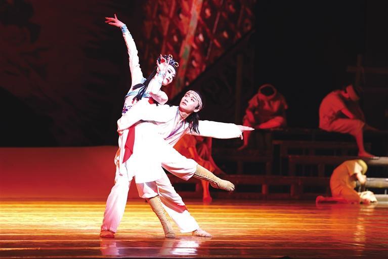 經(jīng)典舞劇《大夢敦煌》是一部富于傳奇色彩的四幕舞劇,首演至今,已獲得中宣部“五個一工程”獎、中國舞蹈“荷花獎”、中國“文華獎”等多個獎項,被譽(yù)為中國原創(chuàng)舞劇中的頂級之作,民族舞劇的經(jīng)典之作。當(dāng)晚,集故事美、音效美、舞美美、表演美于一身的《大夢敦煌》,以一場淋漓盡致、亦夢亦幻的完美演出,收獲了現(xiàn)場觀眾經(jīng)久不息的掌聲。圖為演出現(xiàn)場。