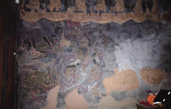 現(xiàn)建筑保存完好,塑像多被破壞,僅存明代懸塑七尊,塑像腳底踩踏祥云,衣帶飄逸靈動,面容栩栩如生。東西兩壁留有四位天神畫像。殿內(nèi)遺留的龐、劉、茍、畢四大雷部元帥門壁畫,與門楣上方的懸塑和拱眼壁上繪畫的尊神,均是研究明代道教藝術(shù)的珍貴遺存,是當(dāng)?shù)厝?、道、佛三教并存,多元文化共同發(fā)展的歷史見證,對研究土司文化具有重要價值。
