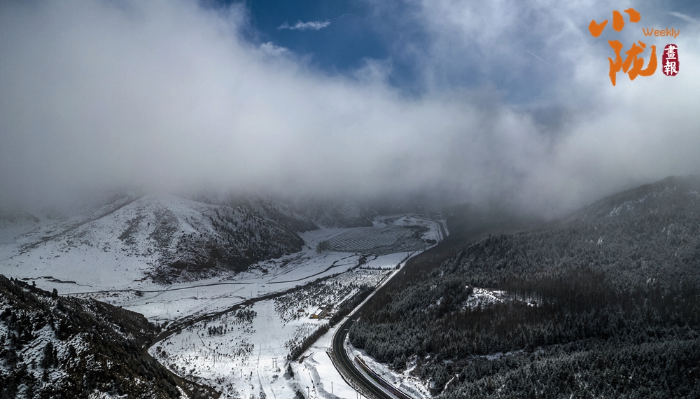 雪后的的云霧,在山谷、松林間隨風(fēng)飄浮,給群山增添了無窮的魅力,盡顯天祝藏鄉(xiāng)的詩情畫意。