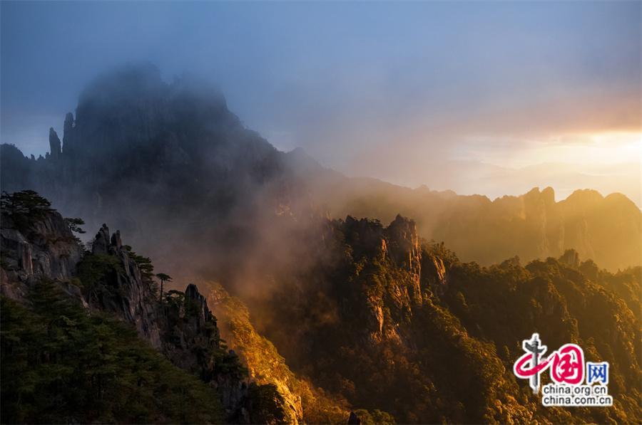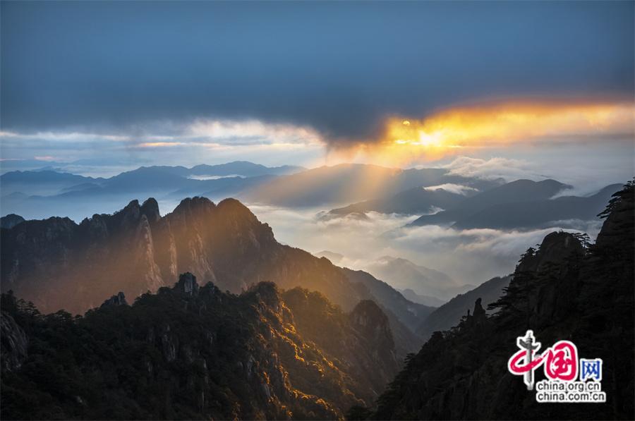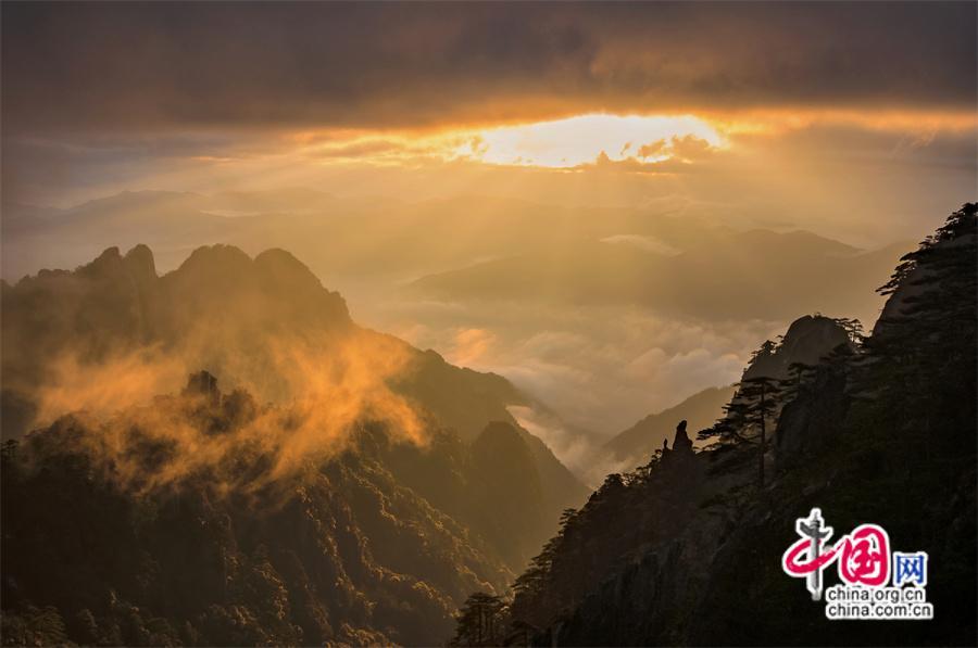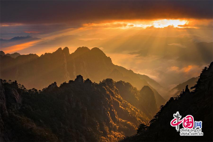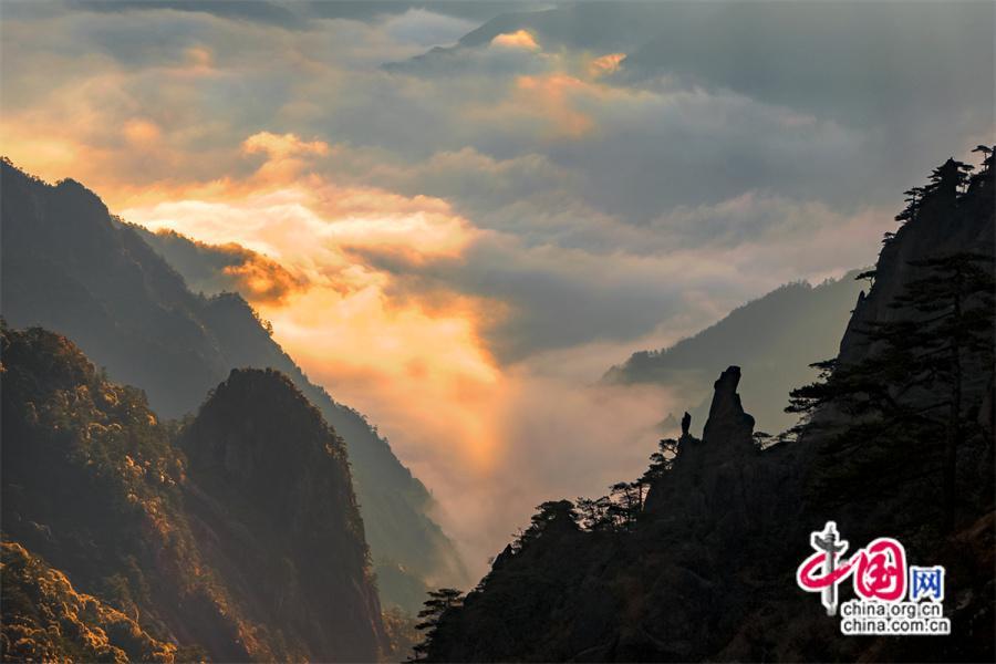 原標(biāo)題:只有一個黃山:日出霞光盡染 云霧輕舒漫卷