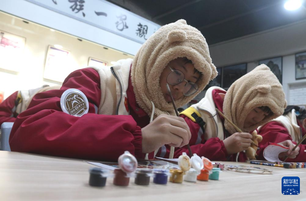 1月17日,在甘肅敦煌莫高里工匠村研學課堂,研學團隊學員學習臨摹敦煌壁畫。新華社發(fā)(張曉亮 攝)