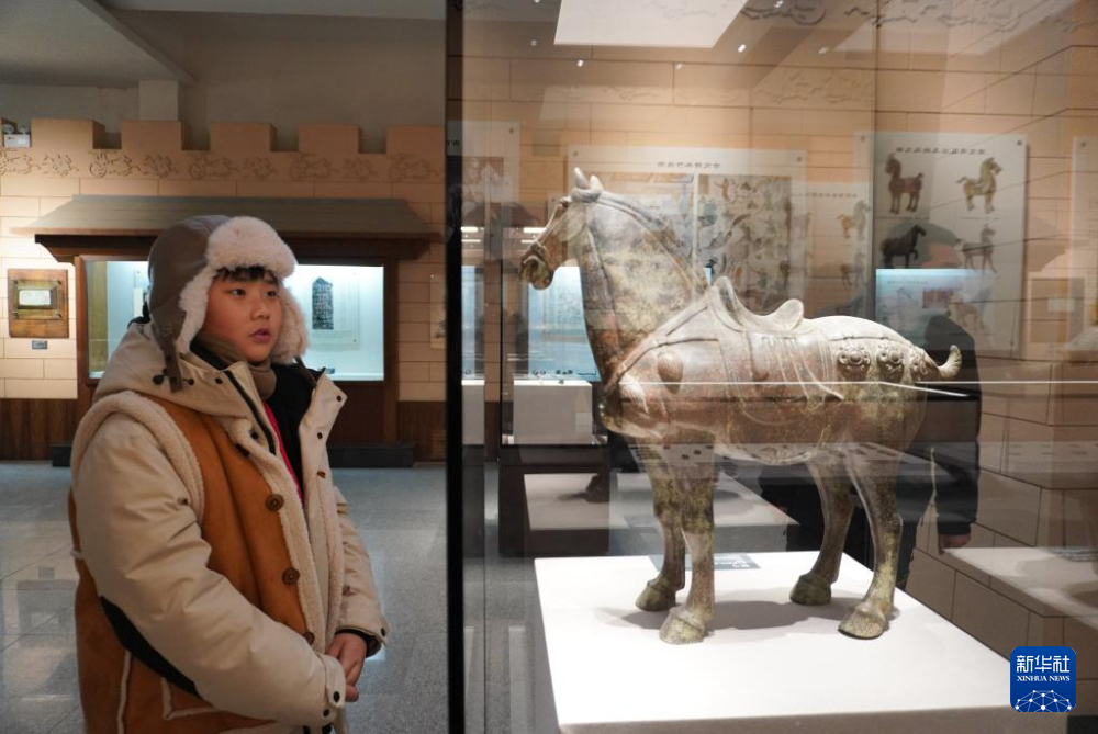 1月21日,在甘肅省敦煌市,參加研學(xué)活動(dòng)的學(xué)生參觀陽關(guān)博物館。新華社記者 馬希平 攝