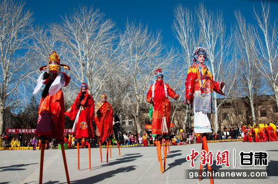 2024年春節(jié)假期,敦煌市組織城鄉(xiāng)9支社火隊(duì)在城區(qū)開(kāi)展社火展演活動(dòng),讓游客近距離體驗(yàn)和感受敦煌民俗文化的獨(dú)特魅力,營(yíng)造紅紅火火、熱鬧喜慶的節(jié)日氛圍。王斌銀 攝