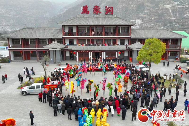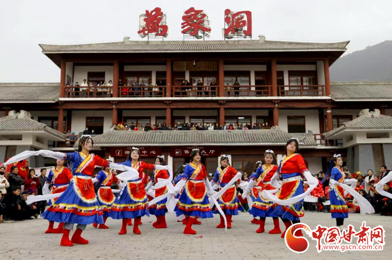 2024年2月21日,在甘肅省隴南市國家AAAA級(jí)景區(qū)——武都區(qū)萬象洞風(fēng)景名勝區(qū),當(dāng)?shù)厝罕娊M織的社火表演隊(duì)正在演出。