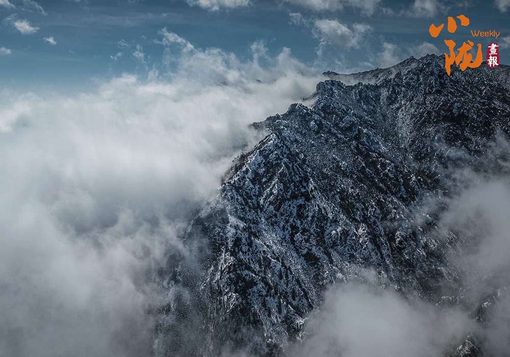 山巒草木都被純凈的白雪覆蓋,遠處的群山蒼蒼茫茫、異峰林立、斷崖高聳,與天相接,天地間輕霧彌漫,渾然一體,讓人心馳神往。
