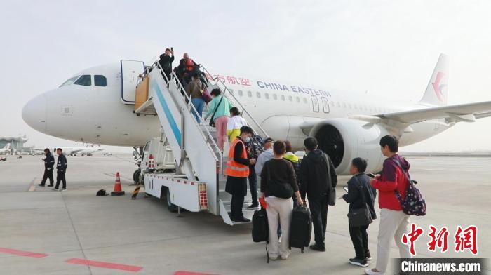 4月15日,蘭州至香港直飛正班航班正式開通。圖為游客登機。(甘肅省民航機場集團(tuán)供圖)
