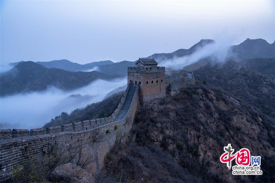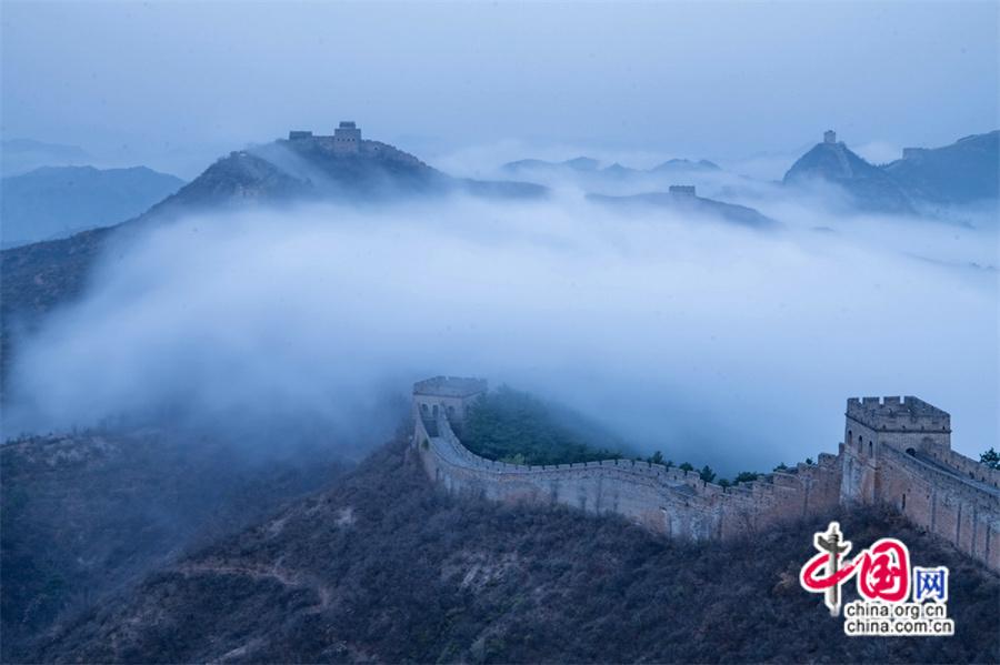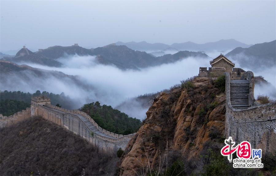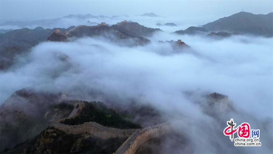 春風(fēng)輕撫金山嶺, 茫茫云海與蜿蜒長城相互映襯,構(gòu)成了一幅幅壯美畫卷。
