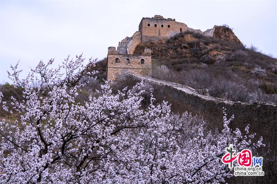 原標(biāo)題:四月長城壯觀云海驚艷 金山嶺杏花共舞春風(fēng)