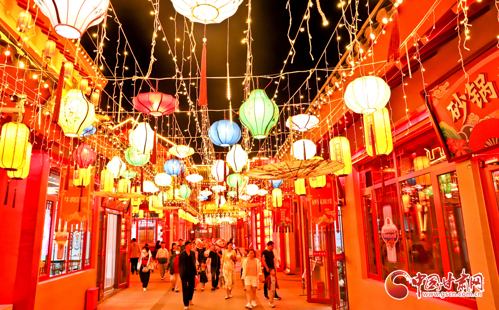 7月13日晚,甘肅省張掖市山丹縣焉支巷子等夜市燈火輝煌,人流如潮,市民和游客們在“吃喝游樂購”中享受輕松愜意的夏日時光。