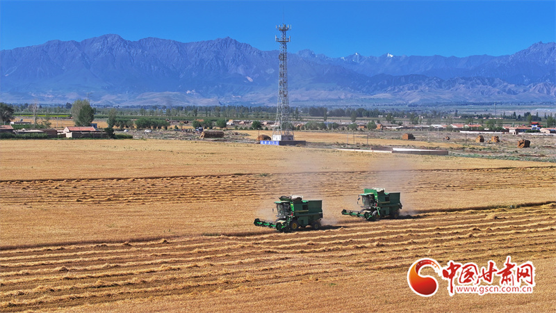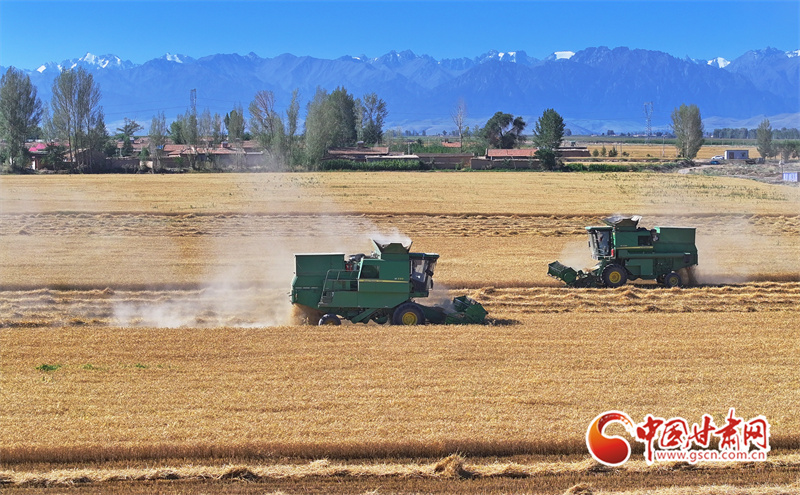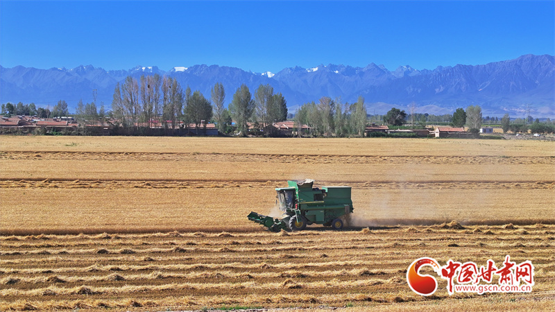 眼下,位于祁連山下的民樂縣南古鎮(zhèn)毛城村800畝連片小麥種植基地上,機聲隆隆,農(nóng)機手們駕駛收割機穿梭往返麥田之中搶收小麥,一派忙碌的豐收景象。近期,隨著民樂縣沿祁連山冷涼山區(qū)小麥迎來成熟季,民樂縣種植的26萬畝小麥進(jìn)入了繁忙的收割期。