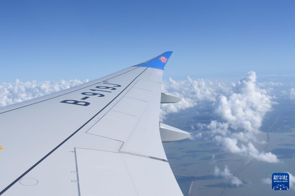 8月29日,編號為B-919J的南航首架C919國產(chǎn)大飛機在從上海飛往廣州途中。新華社記者 田建川 攝