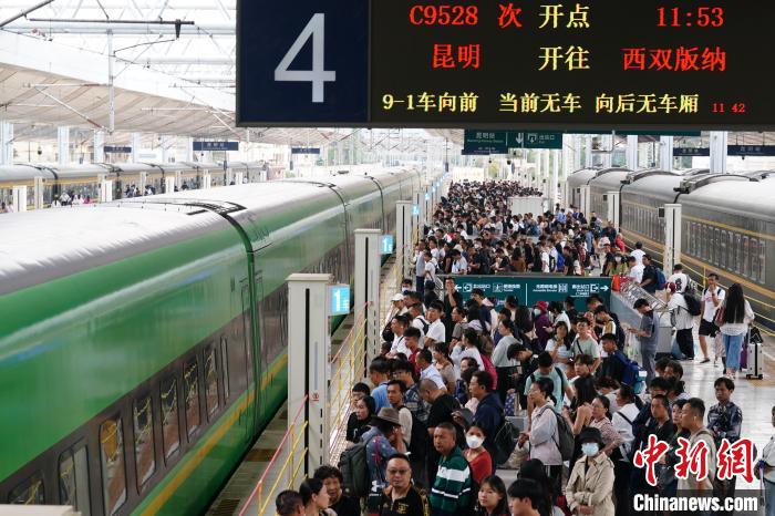 8月31日,云南昆明,旅客在昆明站候車(chē)前往西雙版納方向。當(dāng)日,為期62天的中國(guó)鐵路暑運(yùn)結(jié)束。中新社記者 劉冉陽(yáng) 攝