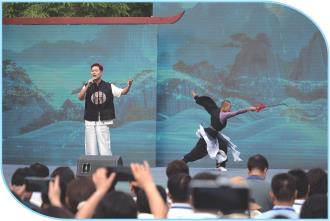 上午9時(shí),由甘肅省文化和旅游廳、甘肅省文學(xué)藝術(shù)界聯(lián)合會(huì)、平?jīng)鍪腥嗣裾鬓k,中共平?jīng)鍪形麄鞑?、平?jīng)鍪形捏w廣電和旅游局、崆峒山大景區(qū)管委會(huì)、平?jīng)鑫幕糜萎a(chǎn)業(yè)投資集團(tuán)有限責(zé)任公司承辦“詩(shī)意甘肅·絲路長(zhǎng)風(fēng)三千里——武詠崆峒·平?jīng)鲈?shī)會(huì)”主詩(shī)會(huì)活動(dòng)在崆峒山中臺(tái)拉開帷幕。此次詩(shī)會(huì)融合詩(shī)歌、武術(shù)、舞蹈、音樂等多種藝術(shù)形式,邀請(qǐng)國(guó)內(nèi)知名朗誦藝術(shù)家與本地文藝工作者聯(lián)袂演出,構(gòu)建起一場(chǎng)恢宏的詩(shī)意盛宴,激蕩起一座城的壯志豪情、歷史榮光。