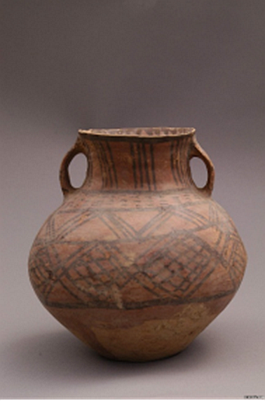 (菱格紋彩陶雙耳罐)