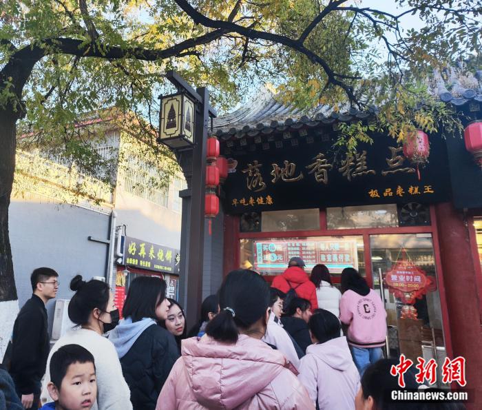 漁陽古街上,游客正排隊購買一家“網(wǎng)紅”棗糕。劉越 攝