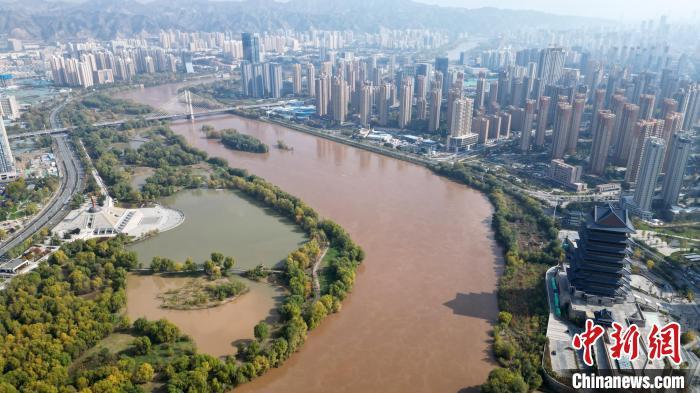 2024年10月31日,黃河蘭州段兩岸的斑斕秋色?!?無人機(jī)照片) 九美旦增 攝
