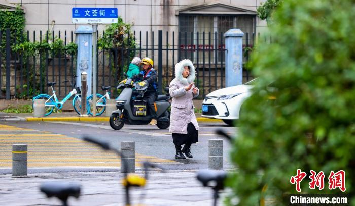11月25日,市民在街頭出行。當(dāng)日,武漢受寒潮天氣影響,氣溫下降明顯。武漢市氣象臺(tái)24日18時(shí)27分發(fā)布寒潮藍(lán)色預(yù)警信號(hào),受較強(qiáng)冷空氣影響,預(yù)計(jì)24日至26日,武漢最低氣溫降幅達(dá)7℃~9℃。中新社記者 張暢 攝