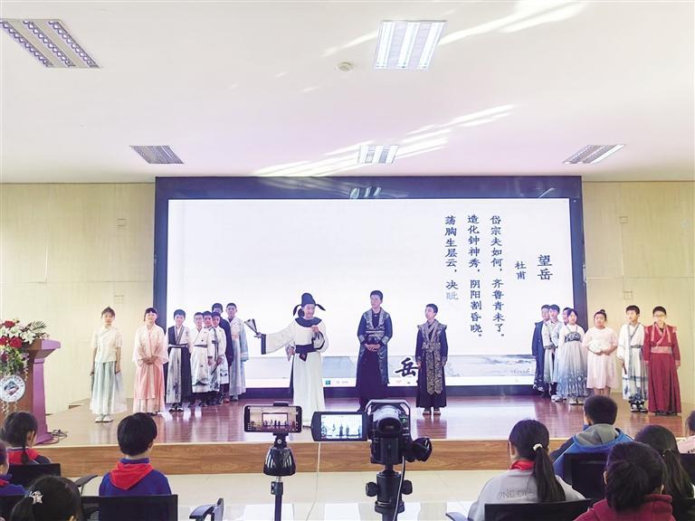 活動(dòng)現(xiàn)場(chǎng),燈光柔和,氛圍莊重而溫馨。舞臺(tái)上,教師與學(xué)生代表們身著古裝,仿佛將觀(guān)眾帶入了千年前的唐朝。他們的表演深情而投入,每一個(gè)動(dòng)作、每一句臺(tái)詞都充滿(mǎn)了對(duì)杜甫及其時(shí)代的敬意。