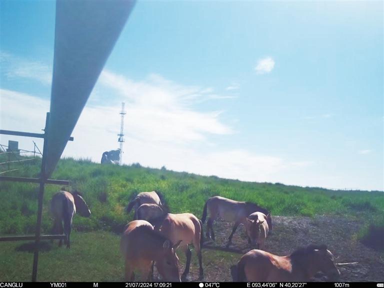 近日,甘肅敦煌西湖國家級(jí)自然保護(hù)區(qū)管護(hù)中心工作人員整理紅外相機(jī)拍攝畫面時(shí),發(fā)現(xiàn)拍攝到普氏野馬“哺乳”的清晰影像。畫面拍攝于今年7月下旬,有8匹普氏野馬繁殖群正在馬圈灣濕地的飲水泉附近活動(dòng),其中有一匹小馬駒滿足地吸吮著母馬的乳汁。據(jù)監(jiān)測,該小馬駒出生于6月上旬,畫面中約已有一個(gè)半月大小,身體健康,毛色光亮。這個(gè)繁殖群領(lǐng)地范圍主要從馬圈灣西觀景臺(tái)至馬圈灣東高地,該區(qū)域可采食物種類豐富、水源充沛,是適合普氏野馬生活的美麗家園。普氏野馬是國家一級(jí)重點(diǎn)保護(hù)動(dòng)物,常棲息于山地、草原和荒漠,性機(jī)警、善奔跑。近年來,隨著敦煌西湖保護(hù)區(qū)生態(tài)環(huán)境保護(hù)力度加大,生態(tài)環(huán)境質(zhì)量持續(xù)改善,群眾保護(hù)野生動(dòng)植物的意識(shí)不斷增強(qiáng),使野生動(dòng)物活動(dòng)范圍不斷擴(kuò)大,種群數(shù)量不斷增加。截至目前,敦煌西湖保護(hù)區(qū)內(nèi)普氏野馬種群數(shù)量已達(dá)166匹。