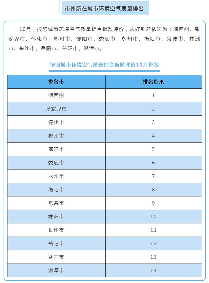 10月湖南環(huán)境空氣質(zhì)量:湘西張家界位居前茅