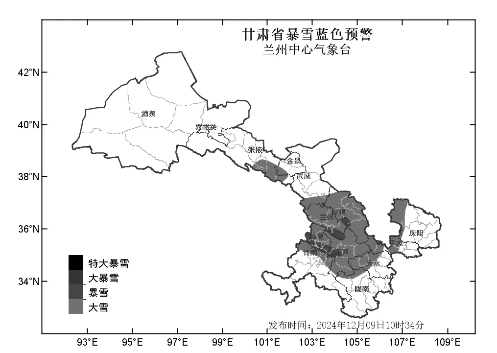 中國甘肅網(wǎng)12月9日訊(西北角·中國甘肅網(wǎng)記者 沈文剛)12月9日10時(shí)34分,蘭州中心氣象臺(tái)發(fā)布暴雪藍(lán)色預(yù)警,預(yù)計(jì)9日15時(shí)至10日20時(shí),蘭州、白銀、定西、臨夏等市州及甘南北部、天水西部、平?jīng)鑫鞑俊c陽西部、張掖南部、武威南部將出現(xiàn)大雪;臨夏南部、定西西部、蘭州南部、白銀中部將出現(xiàn)暴雪。