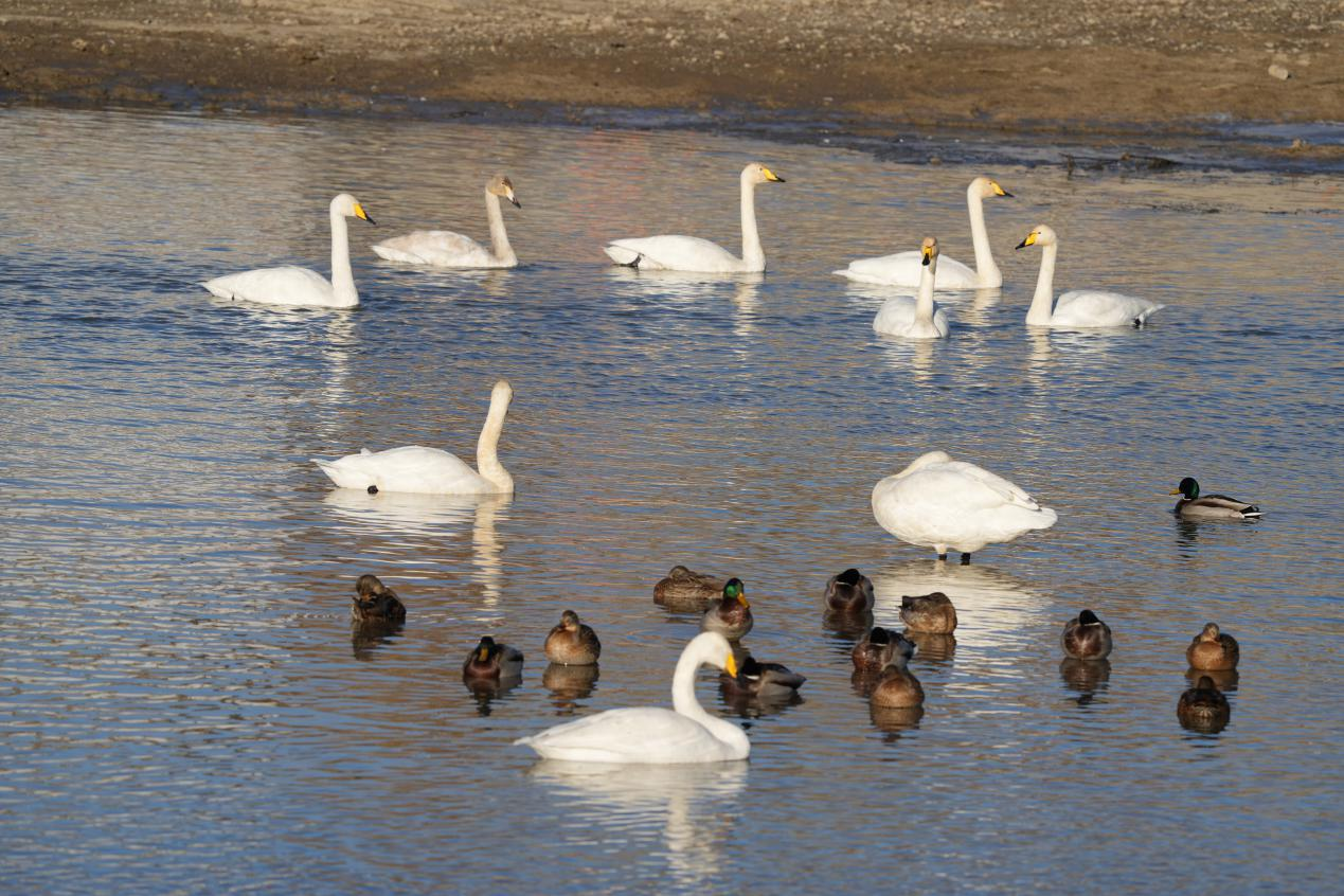 近日,新疆額敏縣迎來(lái)了一個(gè)令人欣喜的消息:越冬的天鵝數(shù)量已增至146只。