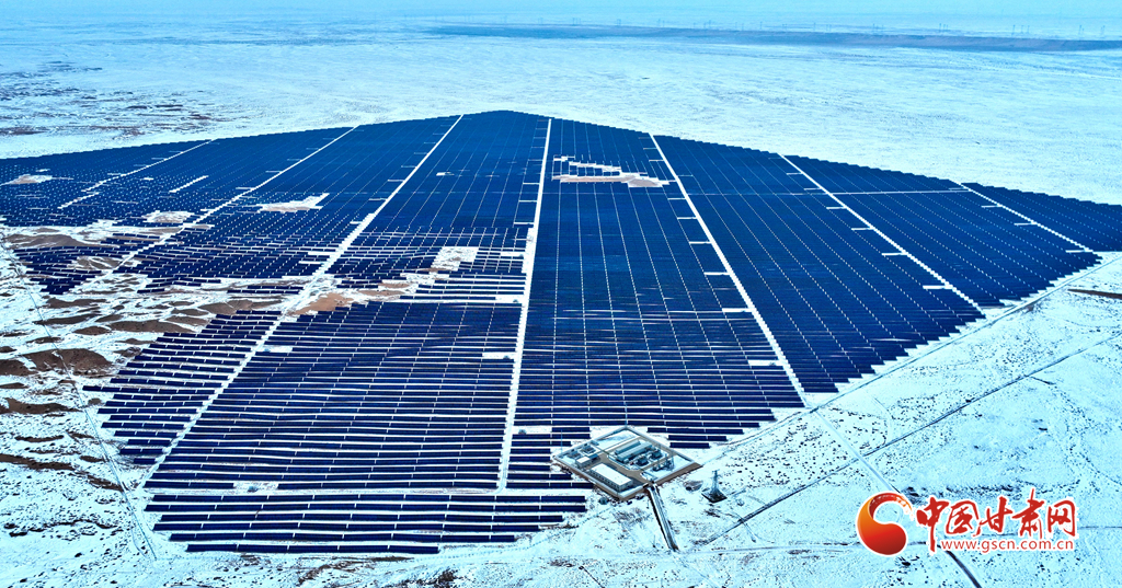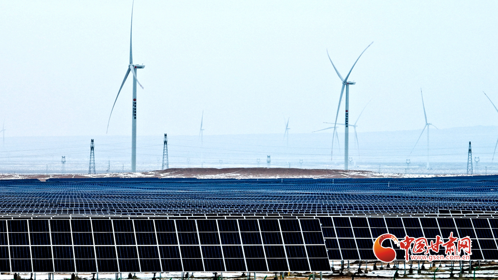 12月18日, 一場大雪過后,大漠深處的張掖市臨澤縣北部灘新能源產(chǎn)業(yè)園內(nèi),81.1萬千瓦光伏治沙光伏集陣和85萬千瓦風(fēng)力發(fā)電機組群,在防沙治沙的同時將光熱和風(fēng)力轉(zhuǎn)換為電能輸入國家電網(wǎng),推進(jìn)了“西電東送”輸電工程建設(shè)。