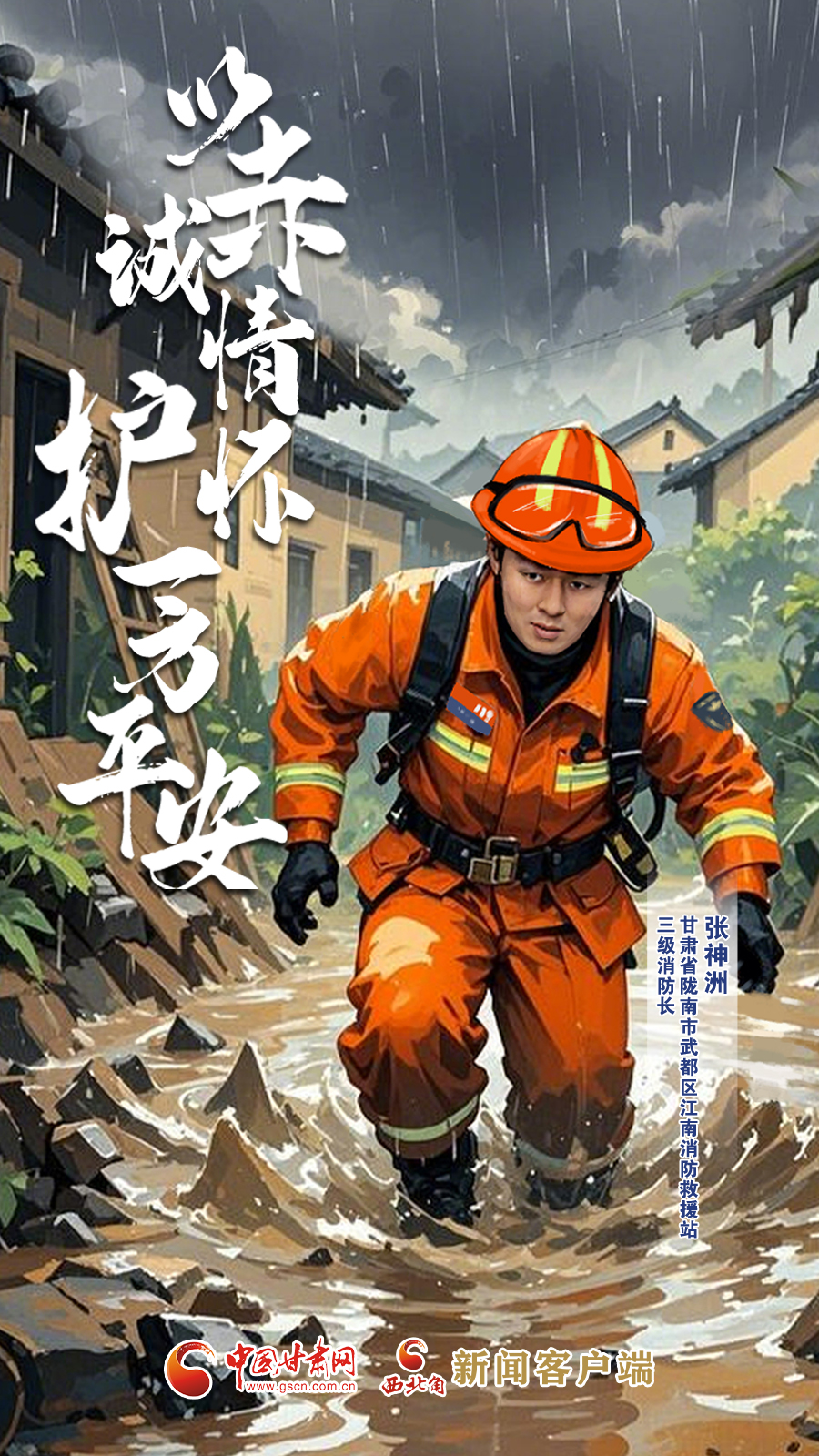 手繪海報|甘肅省隴南市武都區(qū)江南消防救援站三級消防長張神洲:以赤誠情懷 護一方平安