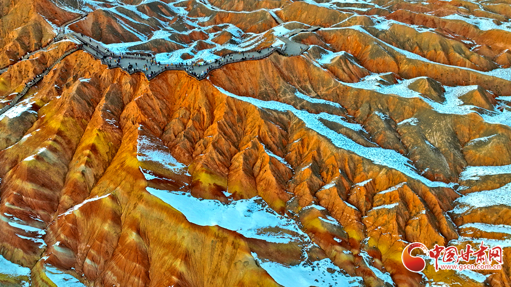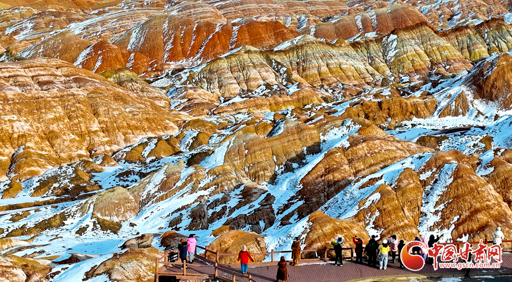 春節(jié)假期,張掖市七彩丹霞景區(qū)內(nèi)人頭攢動(dòng),全國各地游客慕名而來,欣賞宛如夢幻仙境般的雪浴丹霞地貌景觀,在領(lǐng)略大西北壯美景色中歡歡喜喜過大年。
