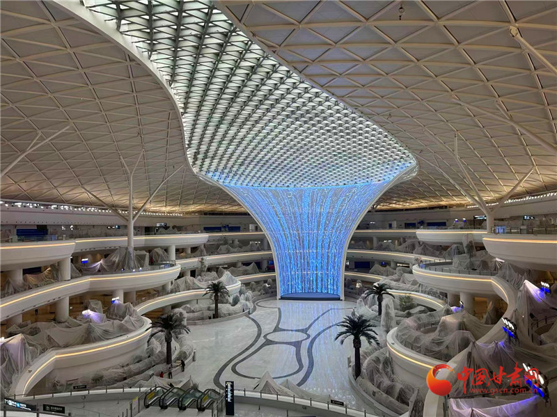 目前,口岸查驗(yàn)設(shè)施基本完成;綜合交通中心工程土建安裝、裝飾裝修工程全部完成,容納3520個(gè)停車位;信息大樓工程核心機(jī)房設(shè)備、弱電系統(tǒng)、裝修全部完成;機(jī)場(chǎng)業(yè)務(wù)用房、安檢護(hù)衛(wèi)用房、值班宿舍、國(guó)際國(guó)內(nèi)貨運(yùn)庫(kù)等附屬工程全面建成;綜合管廊、場(chǎng)區(qū)道路全線貫通;如意廣場(chǎng)、主進(jìn)場(chǎng)道路等場(chǎng)區(qū)綠化苗木基本栽植完成。